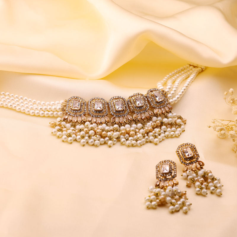 Discover elegance redefined with Facet’s Celestial Bloom choker set — an exquisite fusion of pearls, pastel stones, and intricate gold detailing. Designed with multicolor accents and available in a range of shades, this handcrafted masterpiece radiates sophistication and grace. Perfect for weddings, festive occasions, and luxury celebrations, it’s where tradition meets timeless beauty.