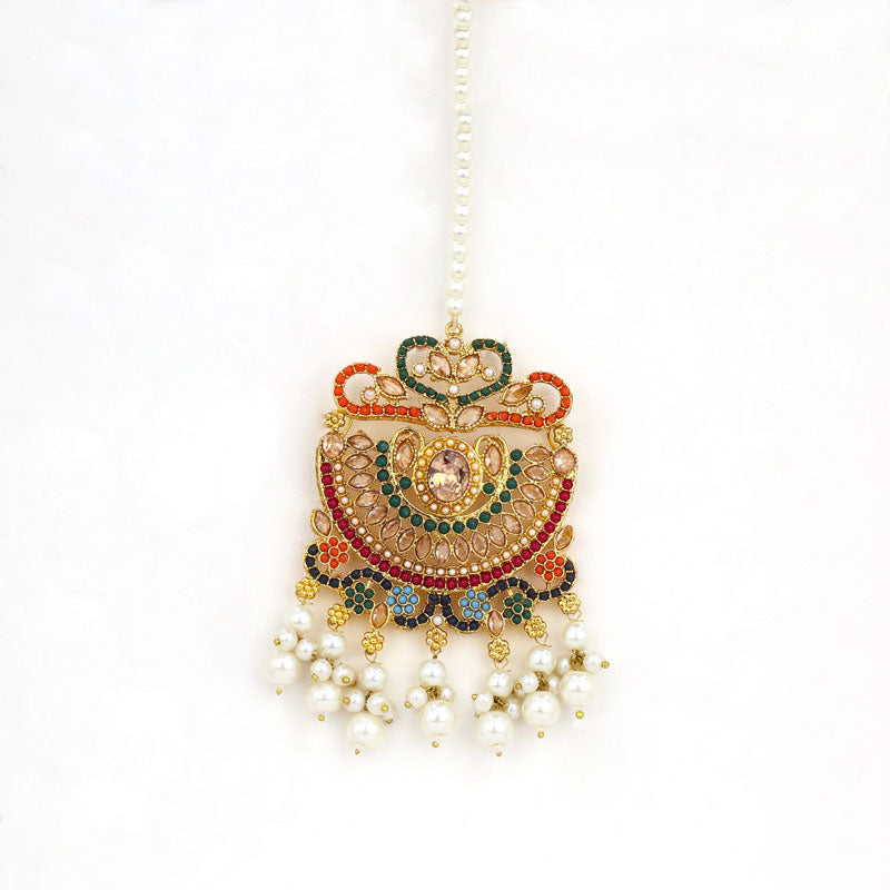 Adorn yourself with Facet’s Mughal Radiance jewelry set — a masterpiece inspired by royal heritage. Handcrafted with vibrant multicolor stones, intricate enamel work, and delicate pearl drops, this set captures timeless grandeur. Available in multiple color options, it’s perfect for weddings, festive occasions, and traditional celebrations that call for regal elegance.